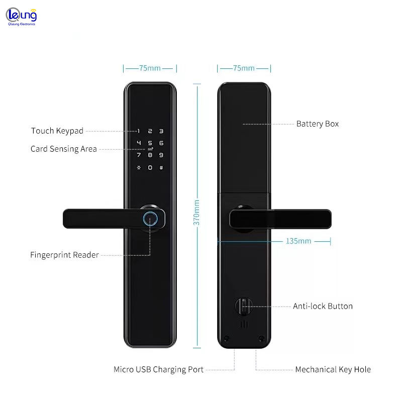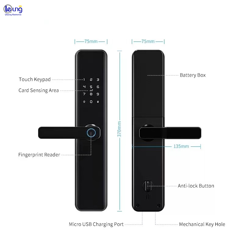 | Épaisseur de porte: | 38 à 100 mm | Méthode de déverrouillage: | Application WiFi Tuya Application et mot de passe et empreinte digitale et carte et clé et USBPort |