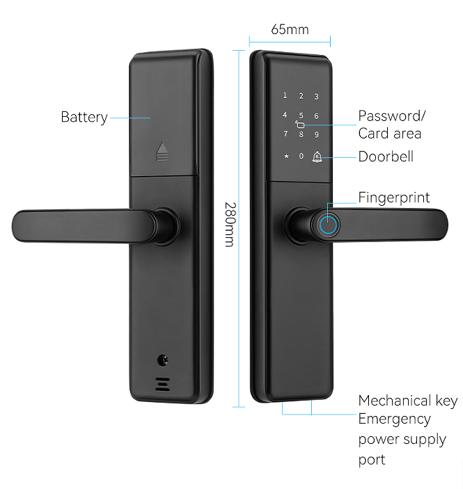 | Déverrouiller: | Application wifi Tuya/application TTlock, mot de passe, empreinte digitale, carte et clé | Appliquer: | Tuya Smart / TT verrouillage |