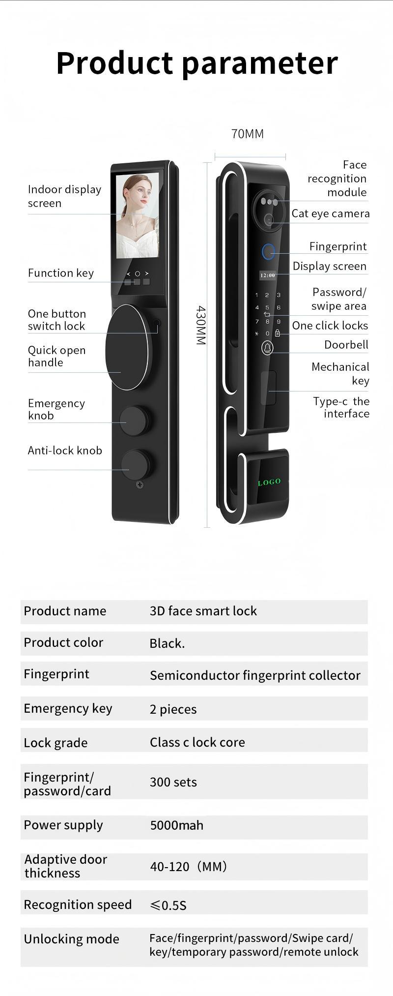 | Mettre en évidence: | Fermeture de porte 3D entièrement automatique,Méthodes de déverrouillage multiples Tuya verrouillage de porte,Prise en charge de la langue |